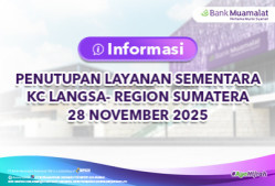 Penutupan Layanan Sementara KC Langsa - Region Sumatera 26 November 2025