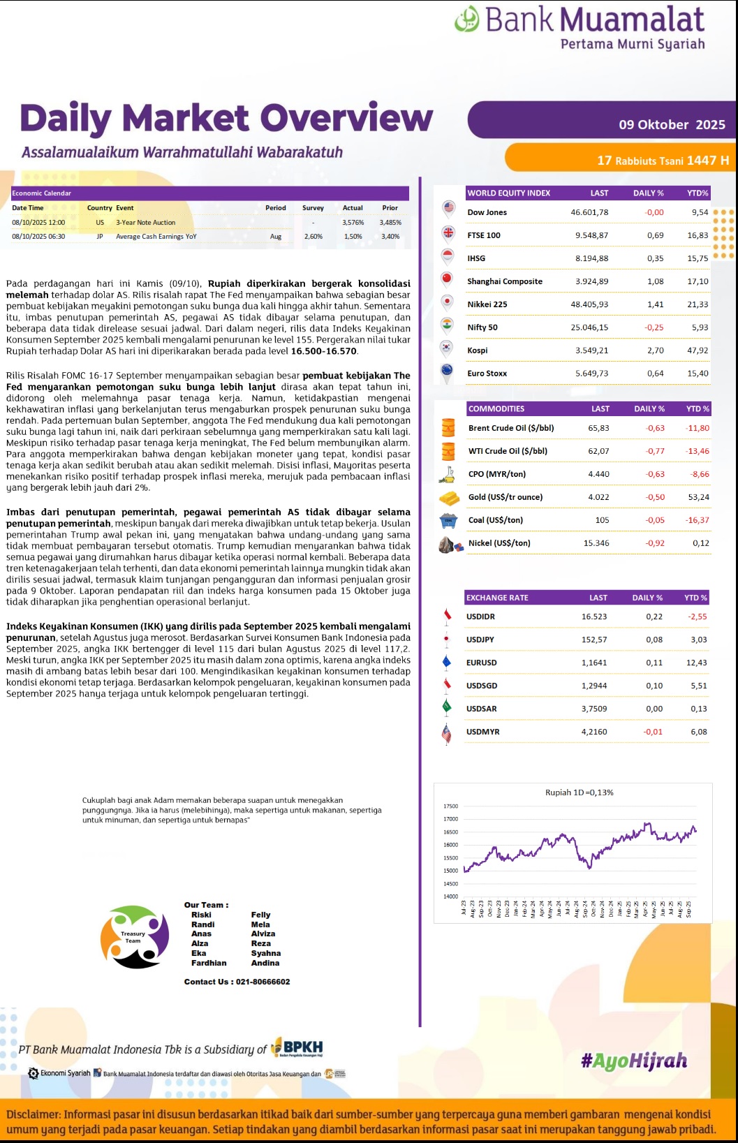 Daily Market Overview - 09 Oktober 2025