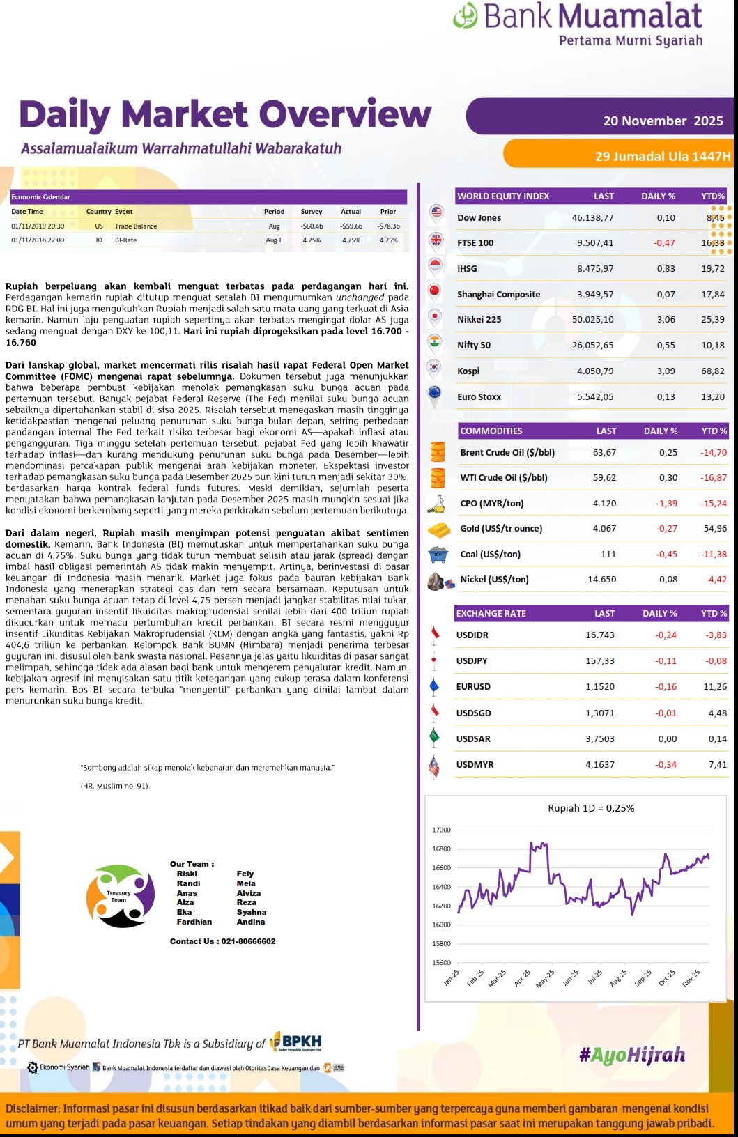 - Perubahan Nisbah Deposito Counter dan Online IDR Bank Muamalat 13 Oktober 2025