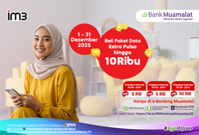 Program Promo Paket Data Indosat adalah program pembelian paket data Indosat mulai tanggal 1 – 31 Desember 2025 berupa Paket Data Freedom Internet 50GB/28 Hari, 28GB/28 Hari, 18GB/28 Hari, akan mendapatkan bonus pulsa hingga 10rb melalui Channel Muamalat DIN, ATM Muamalat, dan Internet Banking Muamalat |