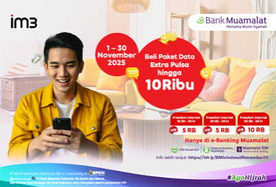 Program Promo Paket Data Indosat adalah program pembelian paket data Indosat mulai tanggal 1 – 30 November 2025 berupa Paket Data Freedom Internet 50GB/28 Hari, 28GB/28 Hari, 18GB/28 Hari, akan mendapatkan bonus pulsa hingga 10rb melalui Channel Muamalat DIN, ATM Muamalat, dan Internet Banking Muamalat |