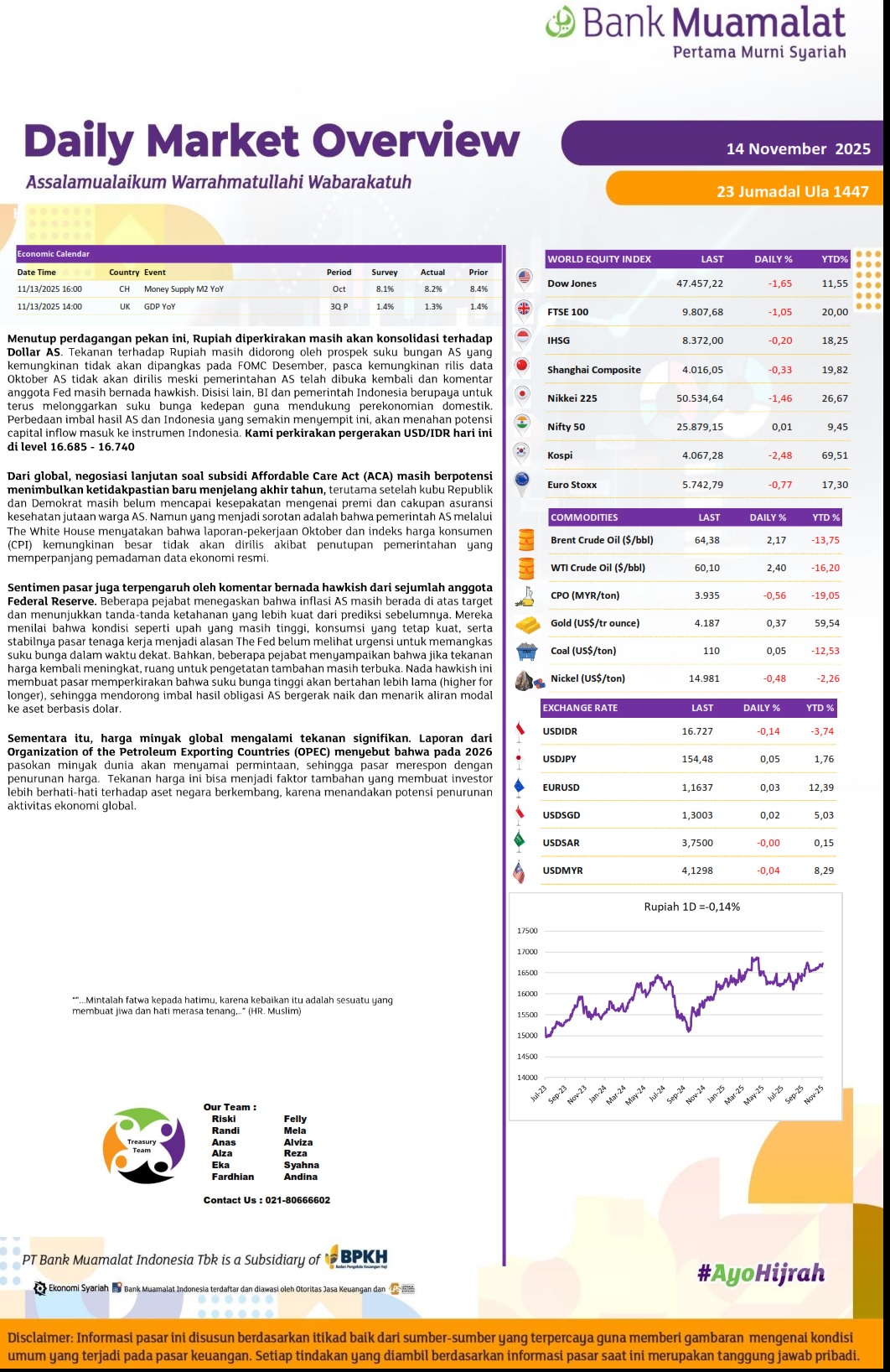 - Perubahan Nisbah Deposito Counter dan Online IDR Bank Muamalat 13 Oktober 2025