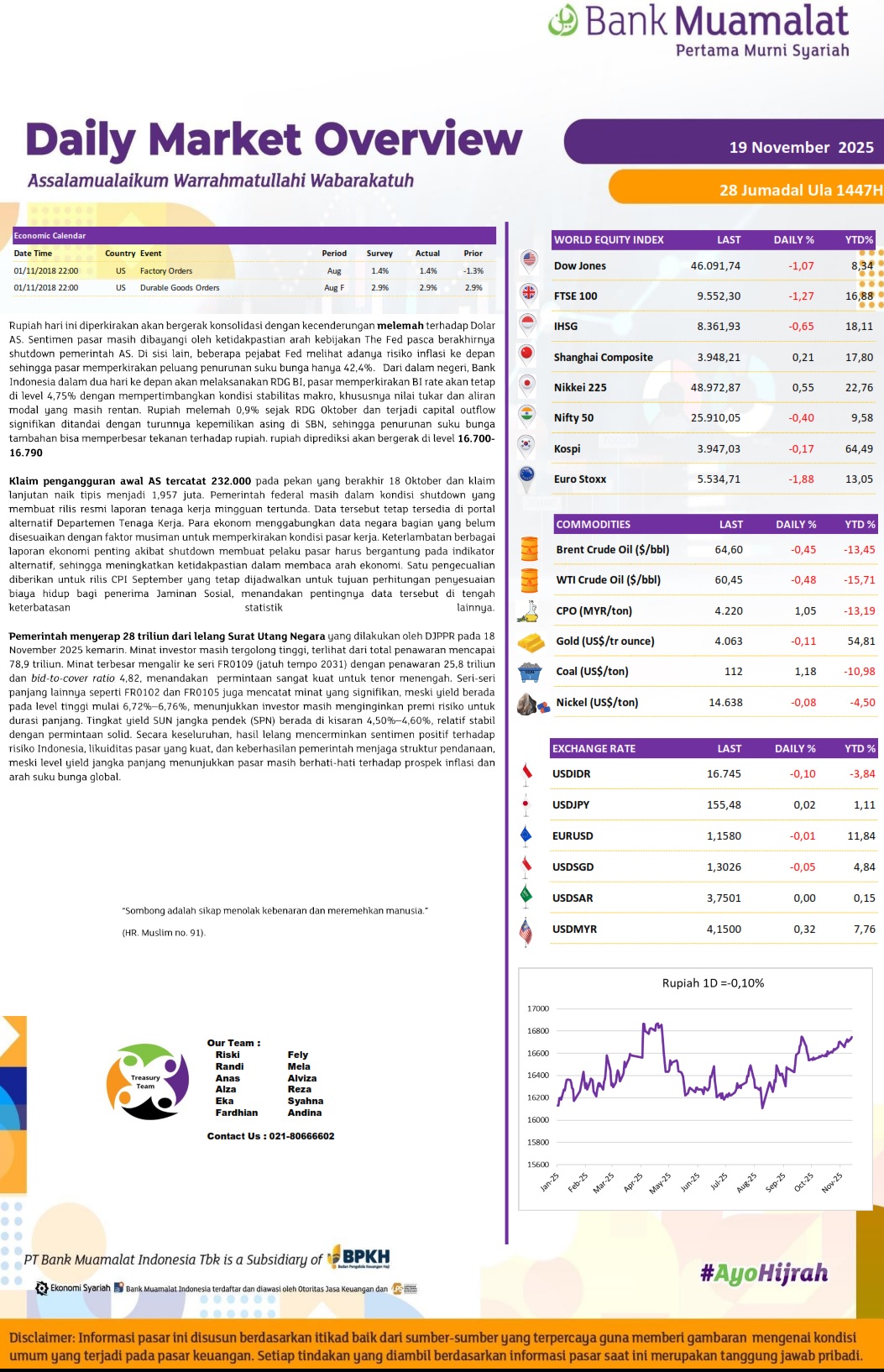 - Perubahan Nisbah Deposito Counter dan Online IDR Bank Muamalat 13 Oktober 2025