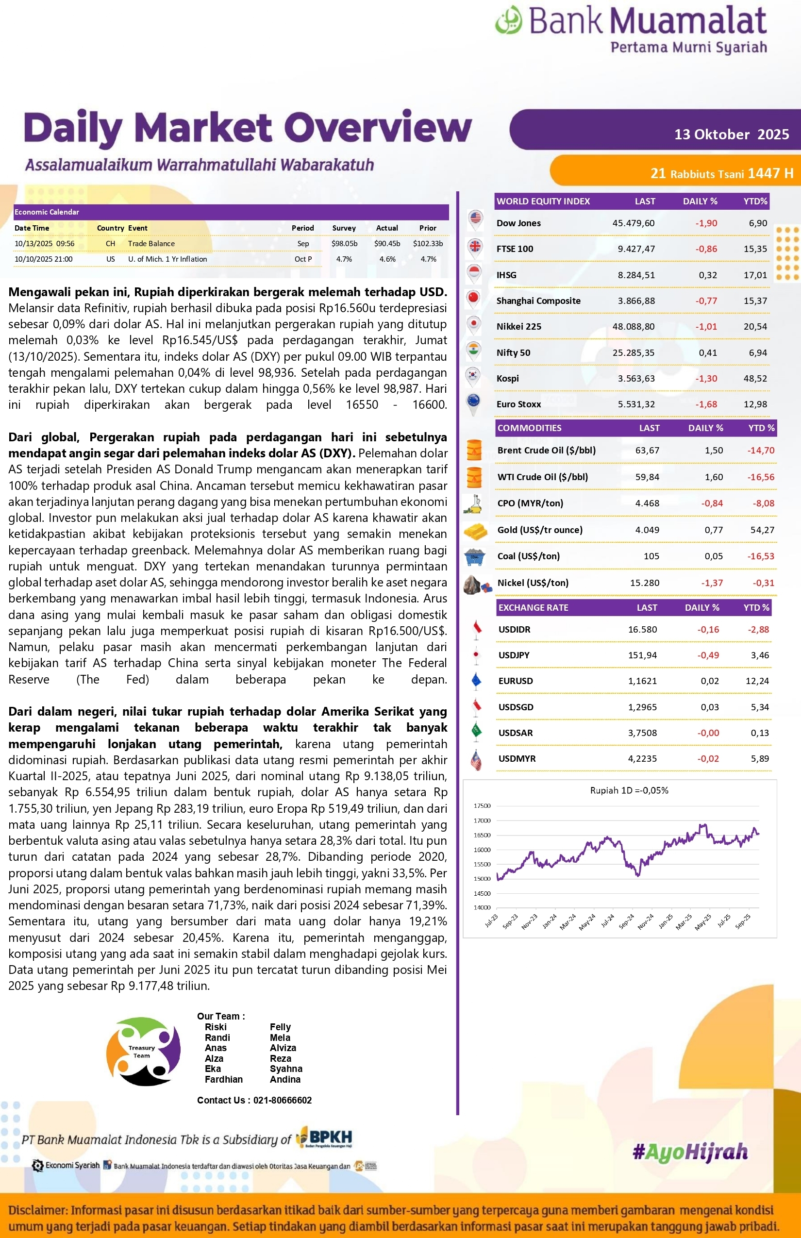 - Perubahan Nisbah Deposito Counter dan Online IDR Bank Muamalat 13 Oktober 2025