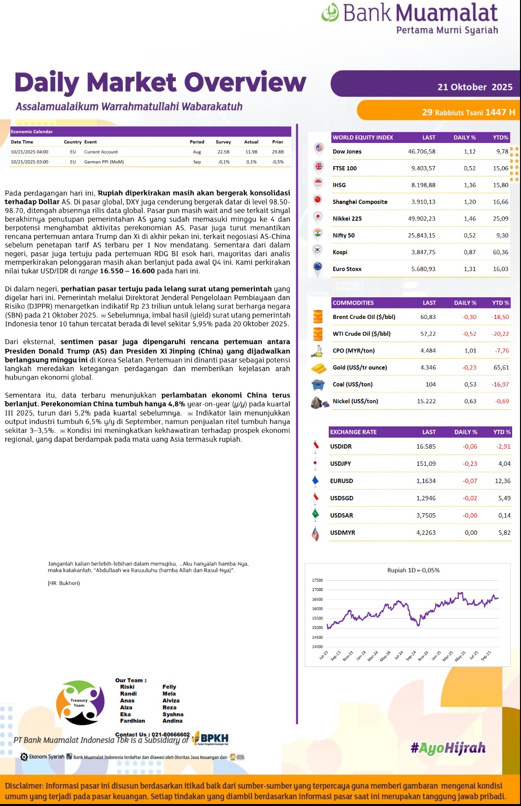 - Perubahan Nisbah Deposito Counter dan Online IDR Bank Muamalat 13 Oktober 2025
