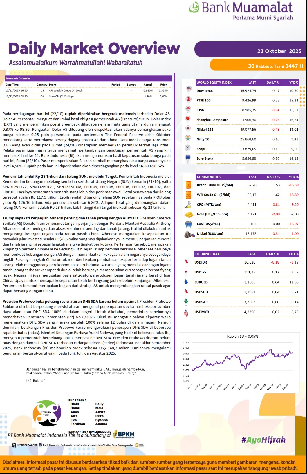 - Perubahan Nisbah Deposito Counter dan Online IDR Bank Muamalat 13 Oktober 2025
