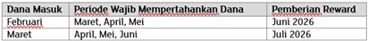 What is the minimum amount of funds and the required duration for fund placement in order for customers to receive the reward ? Customers must maintain a minimum AUM balance of IDR 500 million and place the funds according to the chosen program for a duration of 3 months. |