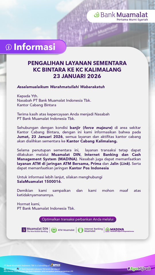 2026-01-23 Pengalihan Layanan Sementara KC Bintara ke KC Kalimalang | 23 Januari 2026