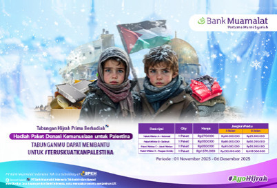 The Tabungan Prima Berhadiah (TPB) Humanitarian Aid Package for Palestine (Winter Survival) program is a term savings program that offers an upfront reward in the form of a humanitarian aid package for Palestine. The funds will be entrusted to Baitulmaal Muamalat (BMM), which will distribute them to our brothers and sisters in Palestine. |